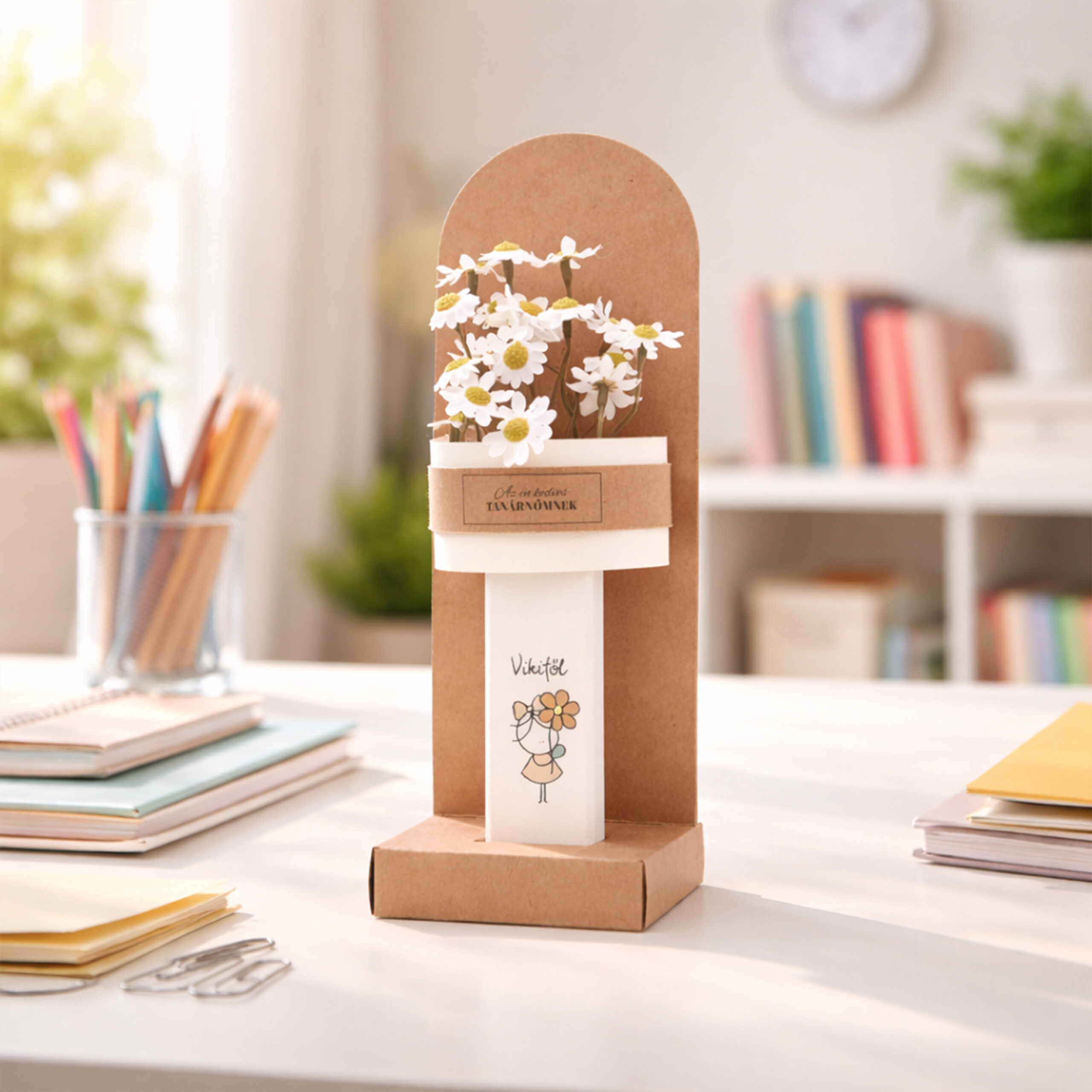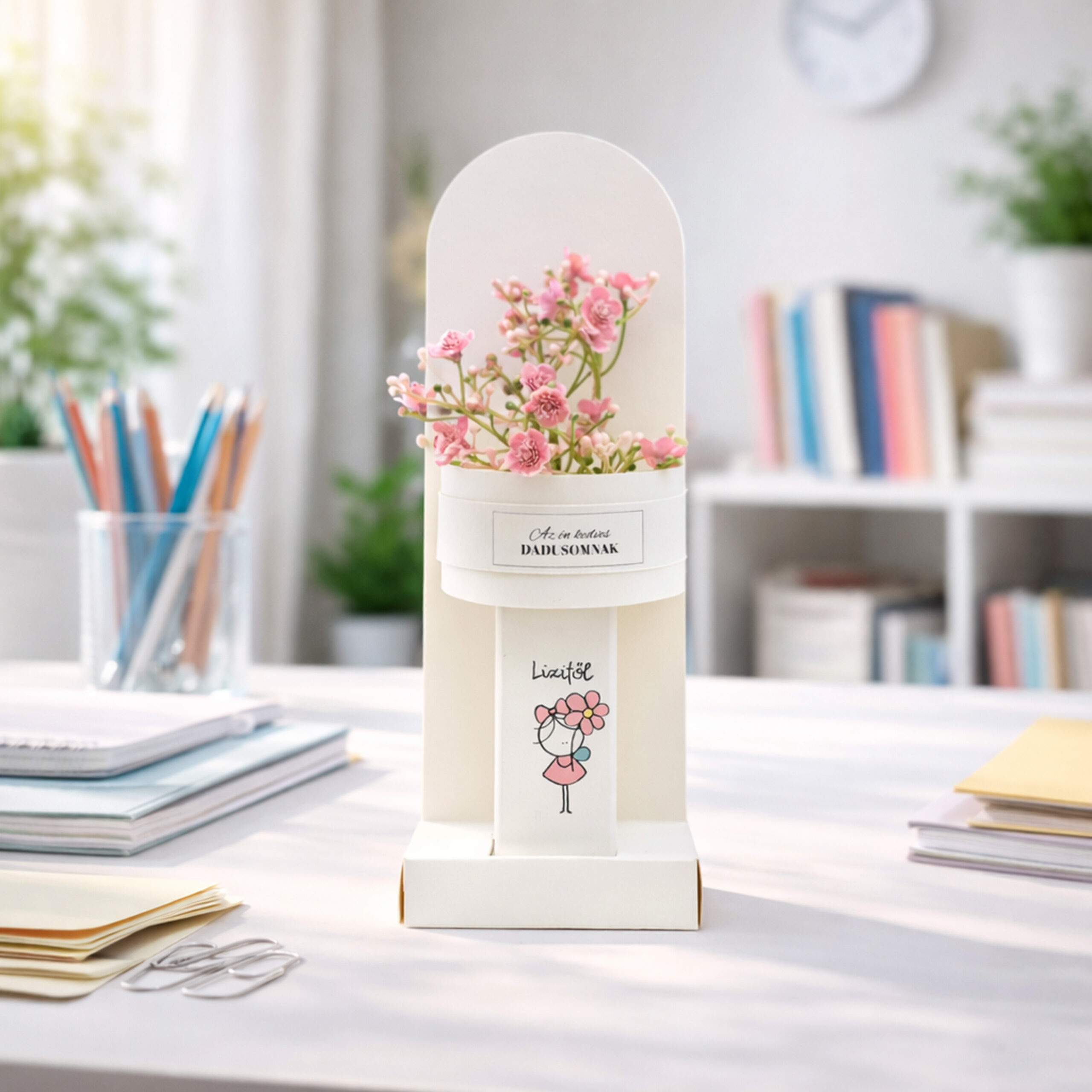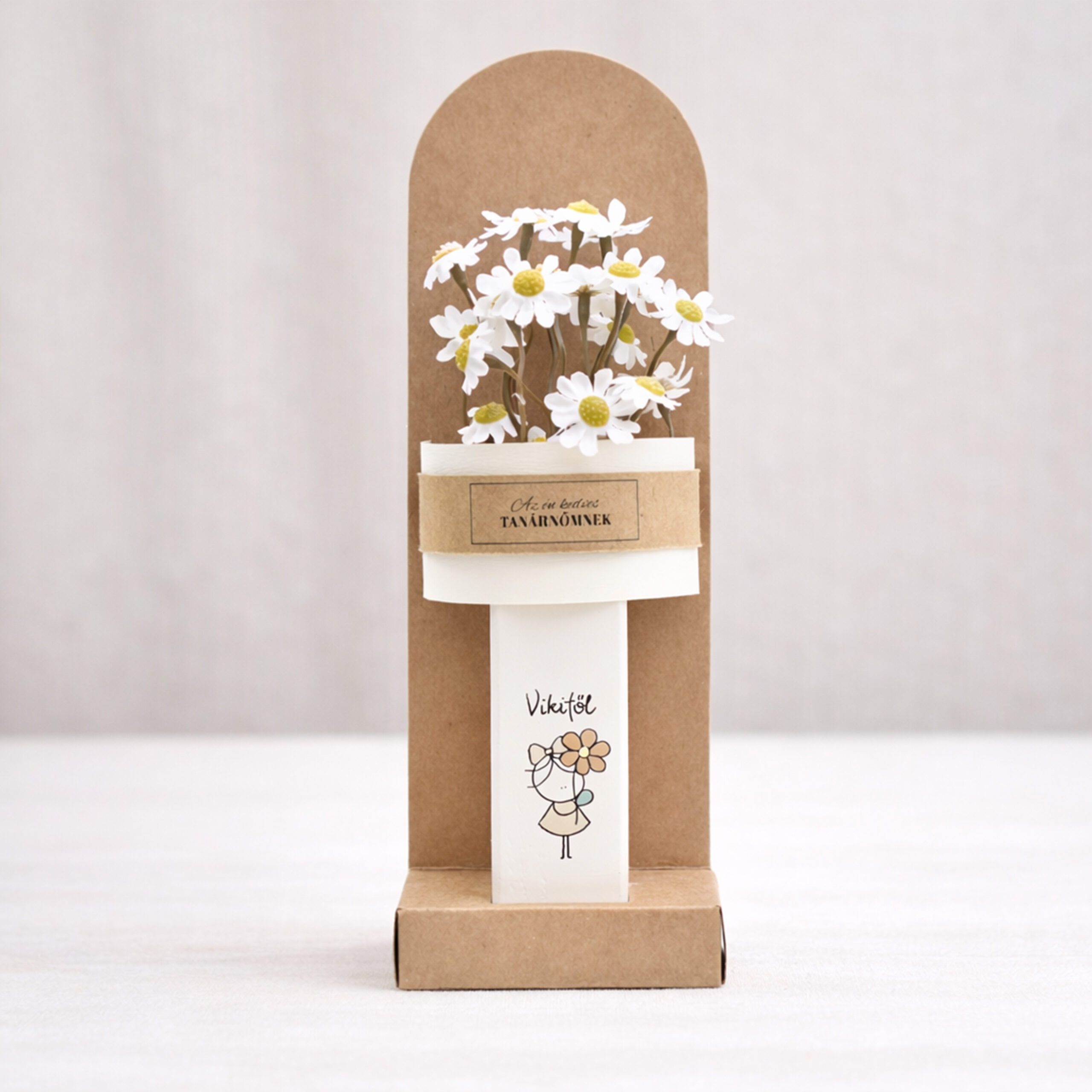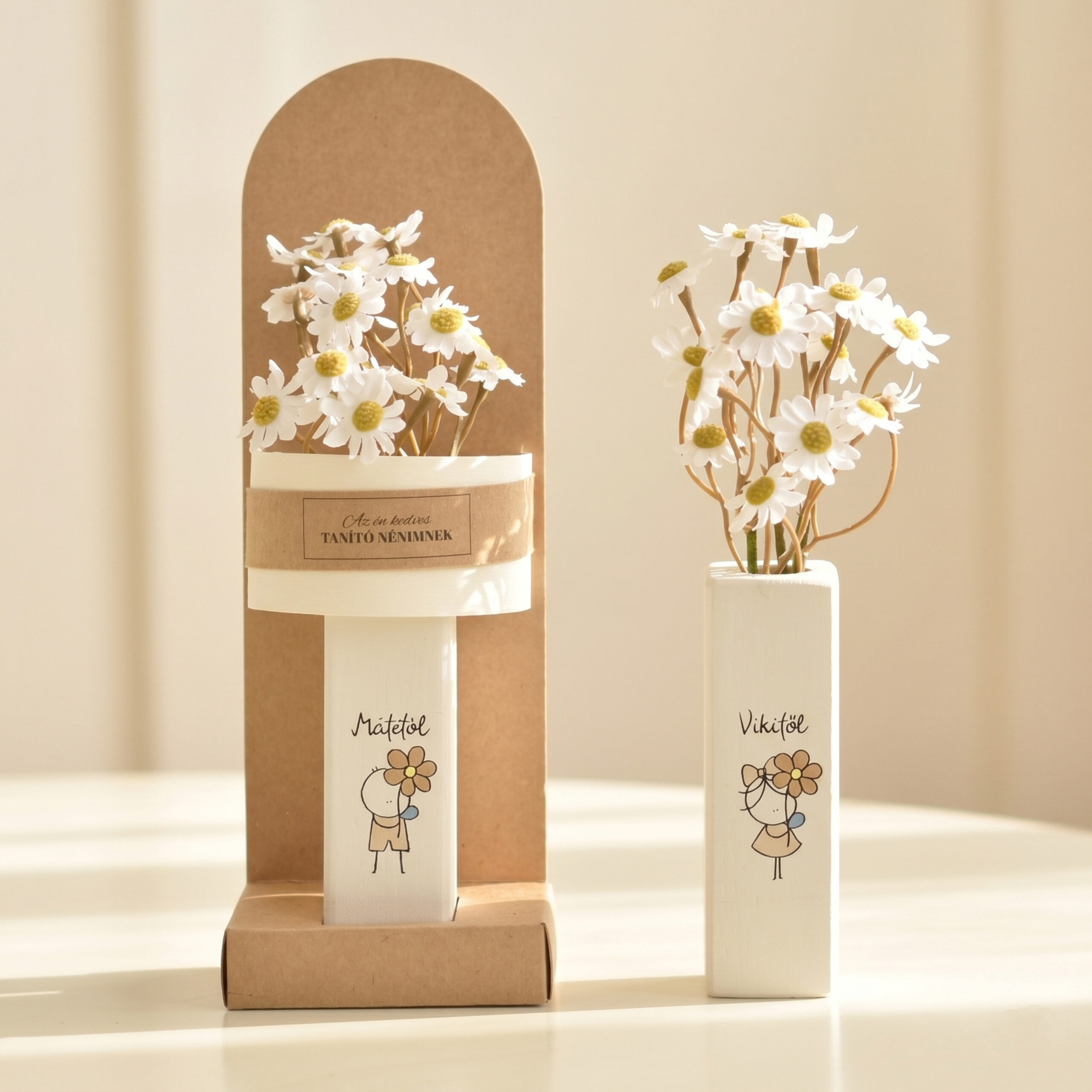 Egyedi és különleges ajándék pedagógusoknak. Fa virágtartó és egyedi rajz, stílusos csomagolásban. Ideális ajándék évzáróra, pedagógusnapra vagy ballagásra.