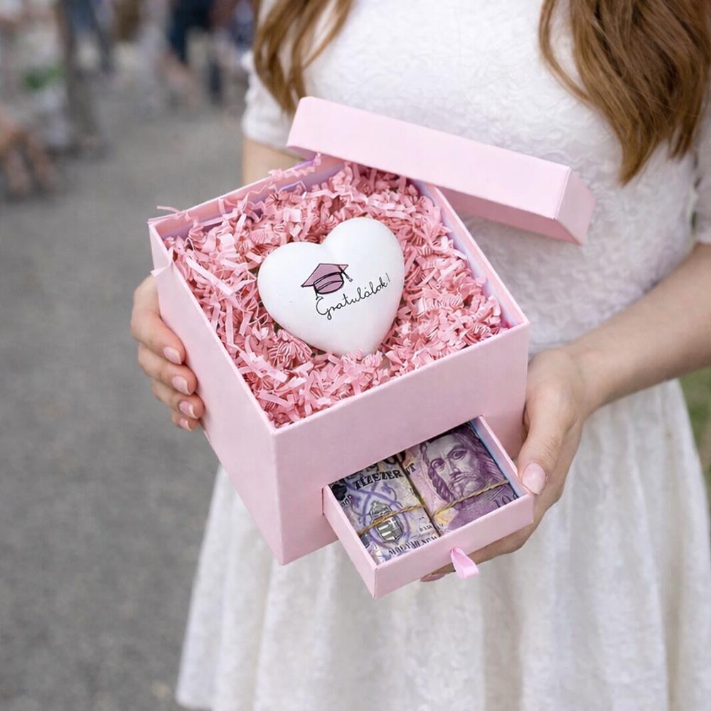 Egyedi ballagási ajándék lányoknak, stílusos pénztartó díszdobozban – maradandó emlék és meglepetés egyben.