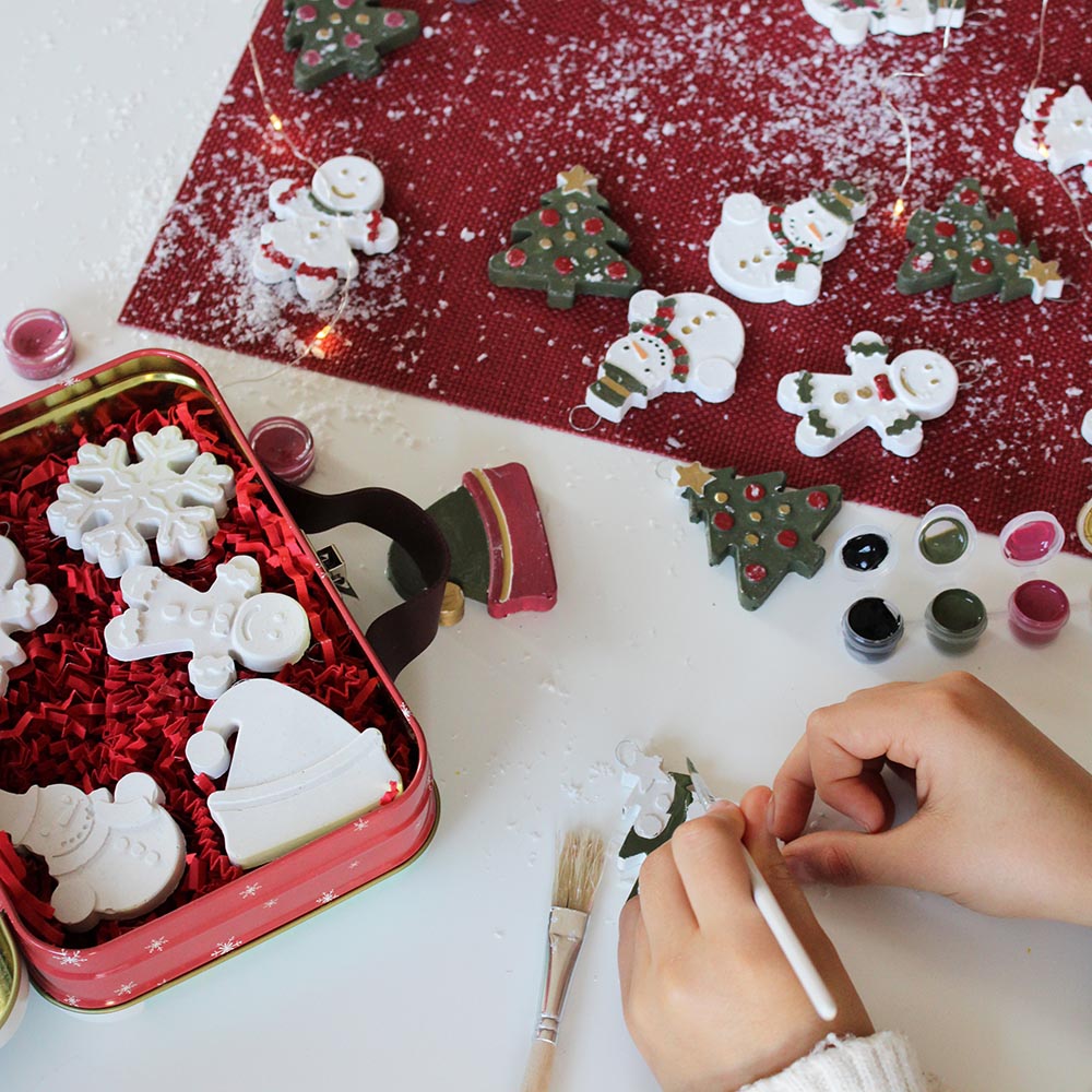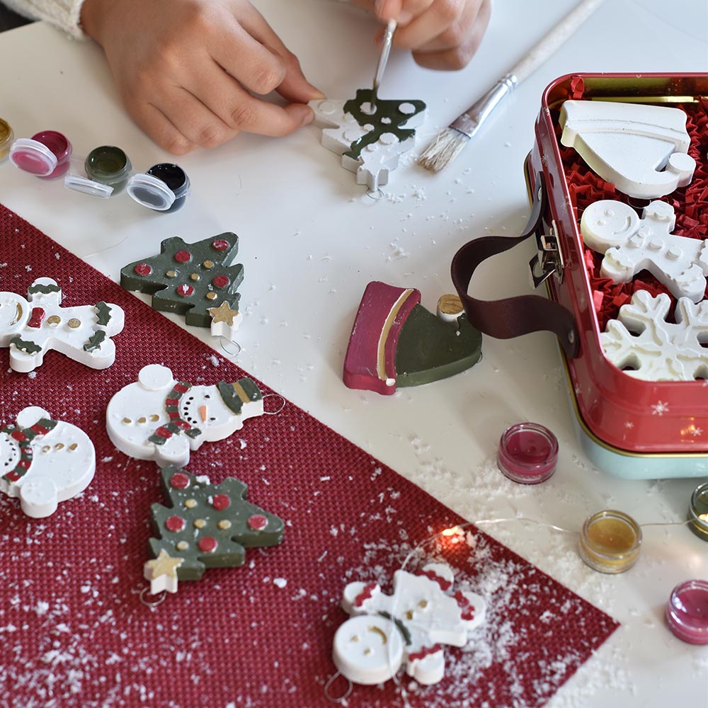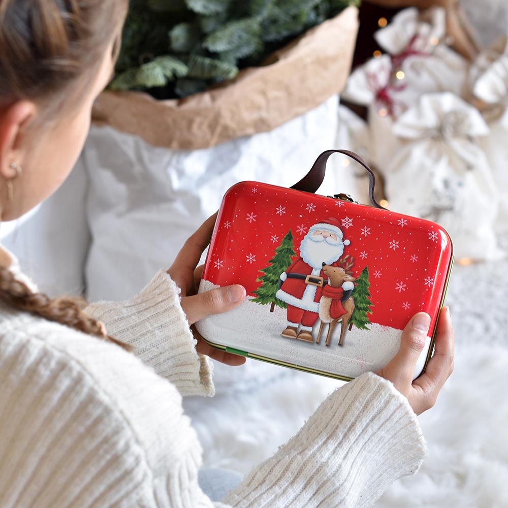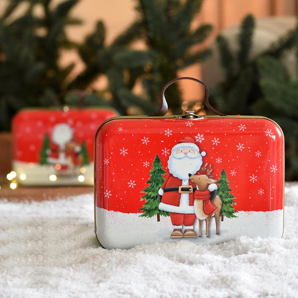 Ez nem egy szokványos mikulás csomag: ez egy ajándékdoboz, ami egy kézműves DIY csomagot is tartalmaz! Négy színben választható a kis bőrönd, különböző karácsonyi grafikákkal. Az akasztóval ellátott, kifesthető figurák akár karácsonyfadíszként is használhatók – vagy ajándékba is adhatók.