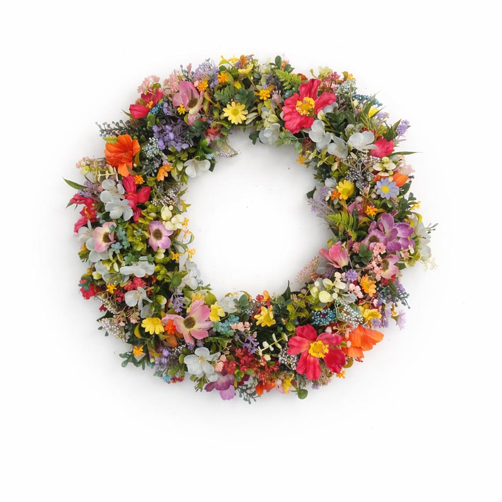 Ez a nagyméretű tavaszi ajtódísz igazi tavaszköszöntő dekoráció: színes, gazdagon díszített virágai már messziről vidám hangulatot teremtenek. A harmonikusan elrendezett, tavaszi árnyalatú virágok természetes összhatást adnak, miközben igazán látványos díszei az ajtónak.