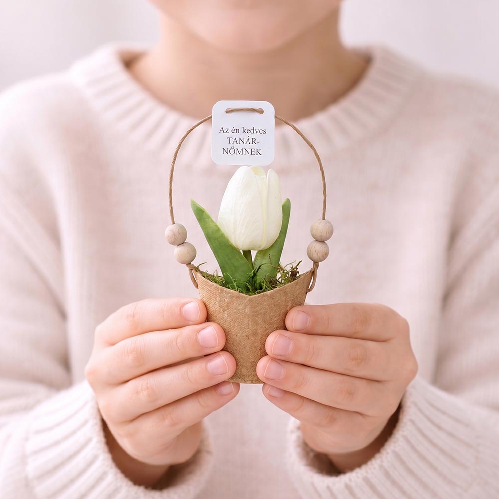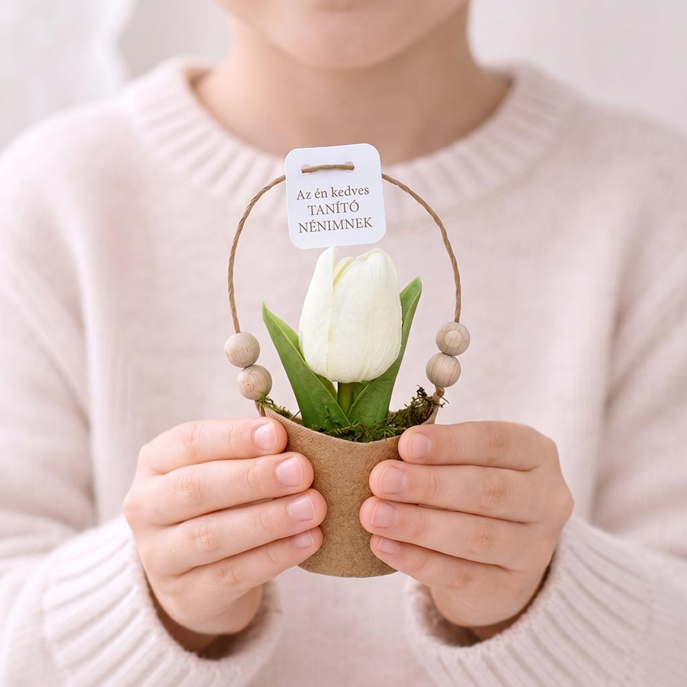 Ez az ajándék tökéletesen illik a pedagógus ajándék ballagásra kategóriába, hiszen minden részlete a gondoskodásról, megbecsülésről és szeretetről szól. Kiválóan mutat íróasztalon, polcon vagy éjjeli szekrényen, de akár díszként is használható a pedagógus otthonában. Egy kedves kisgyermek kezében különösen szívmelengető látvány, miközben átadja ezt a kis virágos köszönetet.