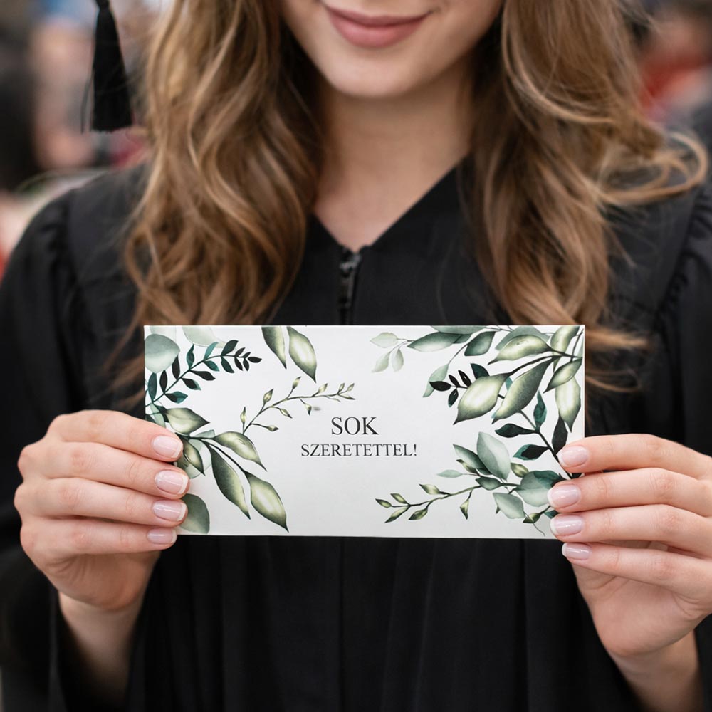 Kinyitható gratulációs kártya, melyben biztonságosan elhelyezheted a bankjegyet