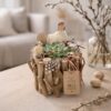 Ez a tavaszi asztaldísz két liba figurával, tojásokkal és virágokkal természetes, friss hangulatot teremt.